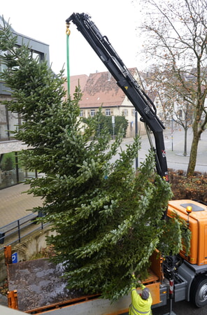 Vor und im Rathaus weihnachtet es schon sehr. Adventliche Dekorationen nehmen Einzug und der Weihnachtsbaum wird mit schwerem Gerät gestellt. Die Bauhofmitarbeiter stellen in geübter Weise den Weihnachtsbaum vor dem Rathaus und beleuchten ihn. Wir wünschen Ihnen einen besinnlichen 1. Advent.