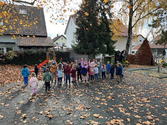 Die Kinder und Erzieherinnen vom Kindergarten „Auf dem Weihen“ freuen sich riesig über die Umgestaltung des Gartens.