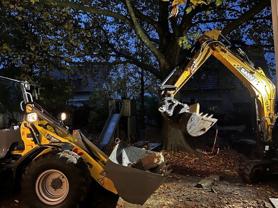 In den vergangenen Wochen verfolgten die Kinder mit großem Interesse, wie geschaufelt, gebaggert und gepflastert wurde. Täglich beobachteten sie neugierig die Arbeiten und kommentierten begeistert die Fortschritte. Besonders fasziniert waren sie, als die Bauarbeiter noch bei morgendlicher Dunkelheit ihre Arbeit begannen und die Baufahrzeuge die ganze Baustelle erleuchteten.