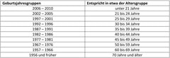 Die Wahlbeteiligung nach Geschlecht und Geburtsjahresgruppe der Wahlberechtigten wird in den ausgewählten Urnenwahlbezirken nachfolgenden zehn Gruppen aus den Wählerverzeichnissen ausgezählt: