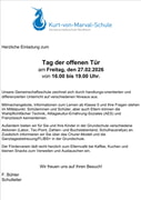 - Tag der offenen Tür an der Kurt-von-Marval-Schule am 27.02.2026