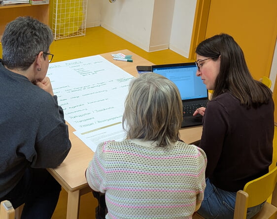 Anschließend analysierte eine Kleingruppe, welche Räume uns zur Verfügung stehen und wie sie aktuell genutzt werden. Eine zweite Gruppe beschäftigte sich mit dem pädagogischen Ansatz von FLIBS. Die dritte Gruppe erarbeitete die Ziele unserer pädagogischen Arbeit.