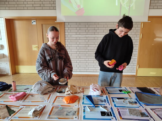 Zu Beginn durften die Teilnehmenden verschiedenste Produkte betrachten, befühlen und testen: von flexiblen Greiffingern und Öl absorbierender „Watte“ über vegane Lederalternativen, Nebelfänger-Netze zu einem Lorm-Handschuh als Kommunikationsmöglichkeit für taubblinde Menschen. Anschließend wurden unterschiedliche Forschungsgebiete vorgestellt; in zwei davon erhielten die Schüler einen näheren Einblick, beispielsweise in die Vorzüge eines Kugelreifens.