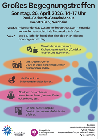 - Großes Begegnungstreffen am 26.04.2026 des Freundeskreises Miteinander und evang. Kirchengemeinde Nordheim