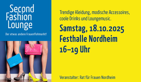 Nächster Frauenflohmarkt "Seocnd Fashion Lounge" findet am Samstag, 18.10.2025 von 16-19 Uhr in der Festhalle Nordheim statt.